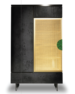 Aluminum, Liquid Metal Coating, Lacquer, Brass, Malachite Gem Inlay