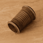 Pure silver, tribal cuff bracelet from Rajasthan. It has rows of beading on it. It is narrower at the wrist (2 inches) and gets wider as it goes up the arm (2.5 inches). The cuff is 4 inches in length.