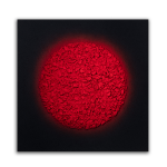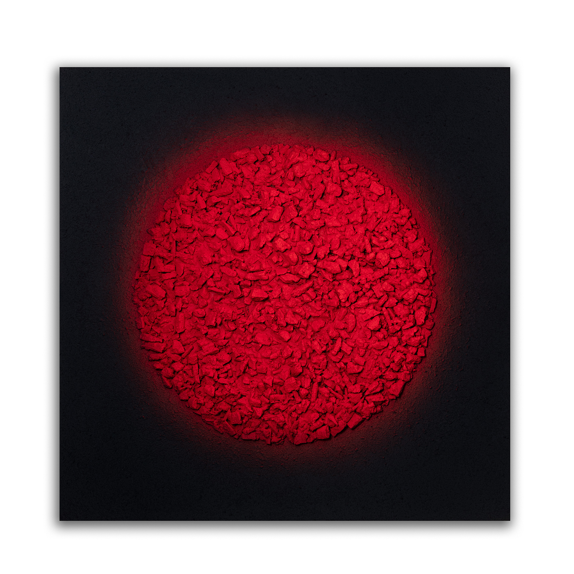 This piece represents pure equilibrium. By placing a stark, heavily textured red sphere against a flat, absorbing black, Dejong isolates the object of celestial beauty. He challenges the viewer to observe the 'micro' details of the pigment while contemplating the 'macro' scale of a dying sun.